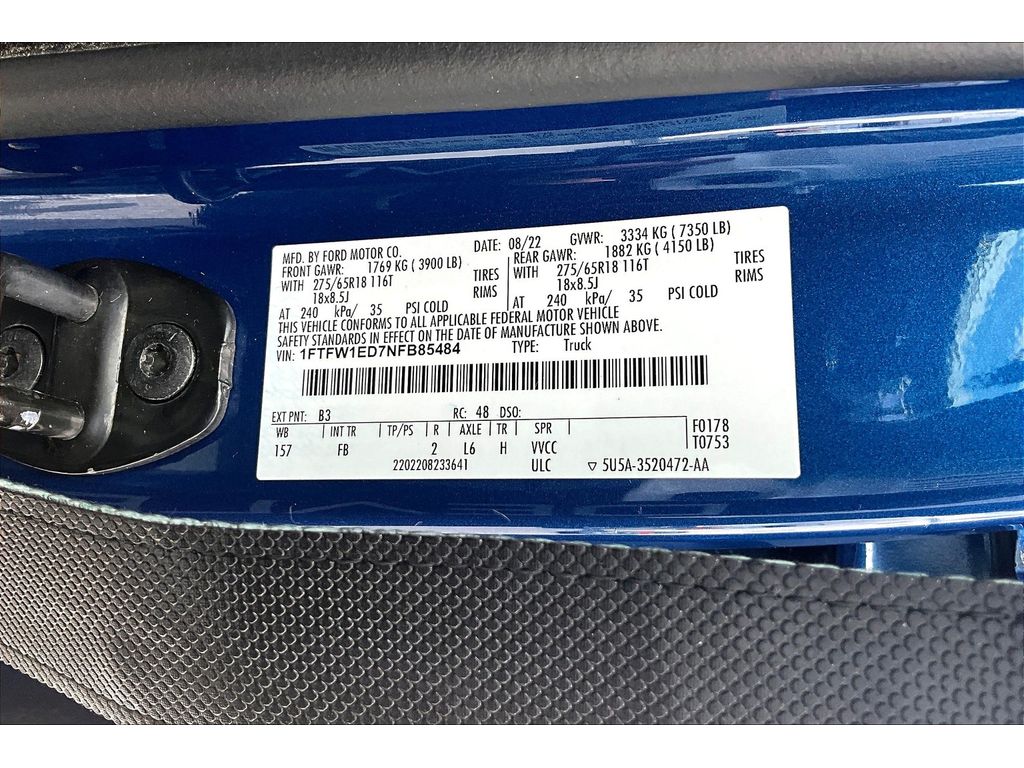 The Ford F-150 offers Android Auto for seamless smartphone integration. The Ford F-150 keeps you comfortable with Auto Climate. This 2022 Ford F-150 offers Apple CarPlay for seamless connectivity. The state of the art park assist system will guide you easily into any spot. It features a hands-free Bluetooth phone system. See what's behind you with the back up camera on this model. This unit has a V6, 3.5L high output engine. With the keyless entry system on this unit you can pop the trunk without dropping your bags from the store. Greater towing safety becomes standard with the installed trailer brake. Maintaining a stable interior temperature in the vehicle is easy with the climate control system. The Ford F-150 has four wheel drive capabilities. Impresses the most discerning driver with the deep polished blue exterior on the vehicle. This Ford F-150 features cruise control for long trips. This 1/2 ton pickup has an automatic transmission.