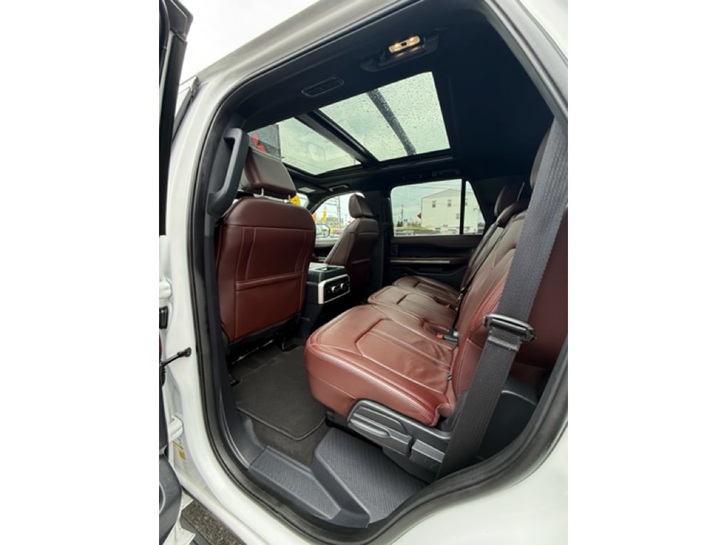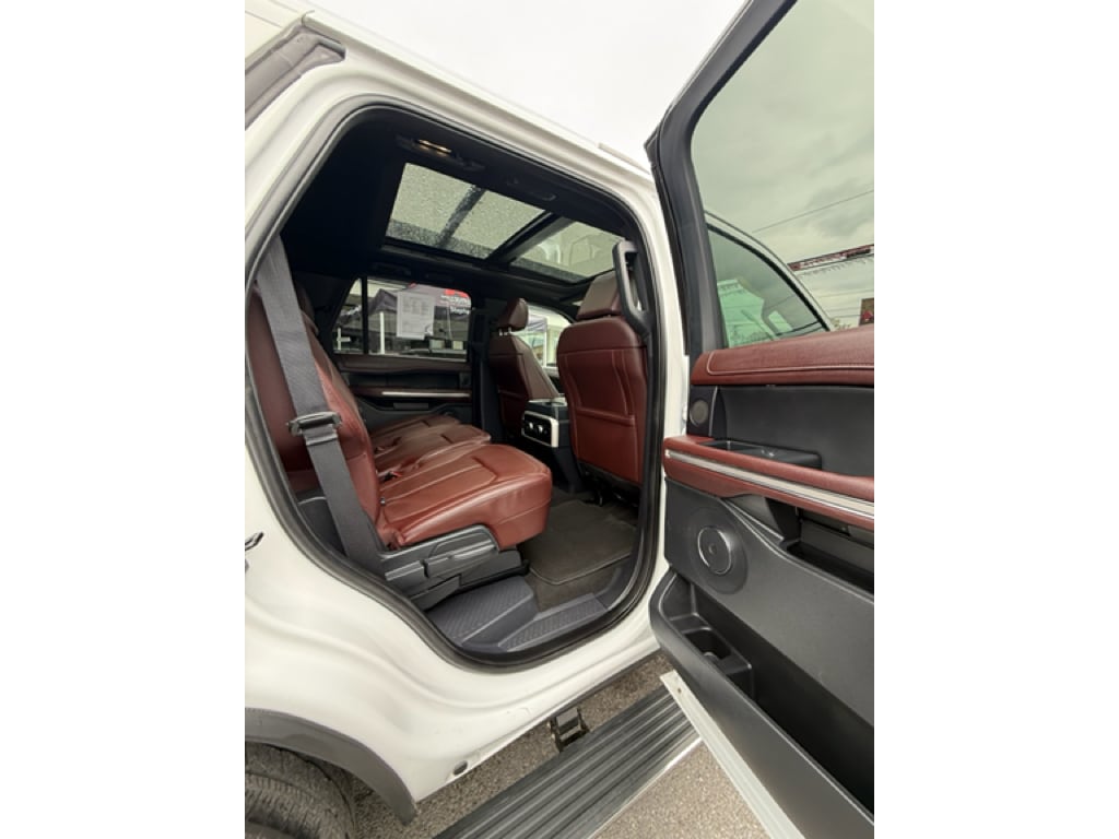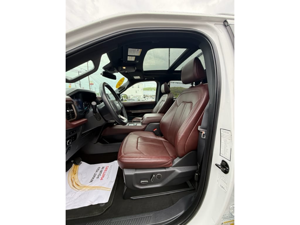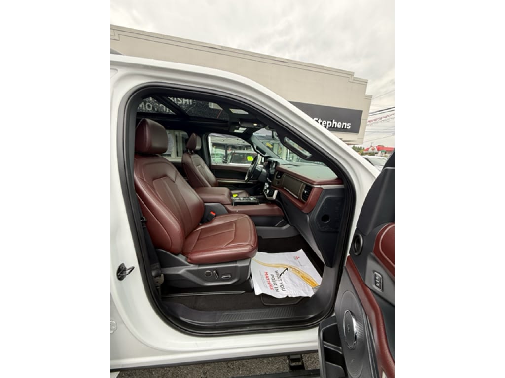 Equipment Group 302A High Package: Heated and Ventilated Leather Front Captain's Chairs; 22 12-Spoke Polished Aluminum Wheels; 7. 450 lbs GVWR; B&O Sound System by Bang and Olufsen; Ebony Black Mesh Grille; Power-Folding Sideview Mirrors with Autofold; Magnetic-Painted Power Deployable Running Boards; 10-Speed Automatic Transmission with SelectShift; Panoramic Vista Roof; 3.5L EcoBoost V6 Engine; Heavy-Duty Independent Suspension; P285/45R22 110H AS BSW Tires; 3.31 Axle Ratio. Ford Co-Pilot360 Assist 2.0: Connected Navigation; Reverse Brake Assist; 360-Degree Camera with Split View. Panoramic Vista Roof. 2nd Row Power-Folding 40/20/40 Leather Bench Seat. Mahogany. Advanced Cargo Manager. **Equipment listed is based on original vehicle build and subject to change. Please confirm the accuracy of the included equipment by calling the dealer prior to purchase.**