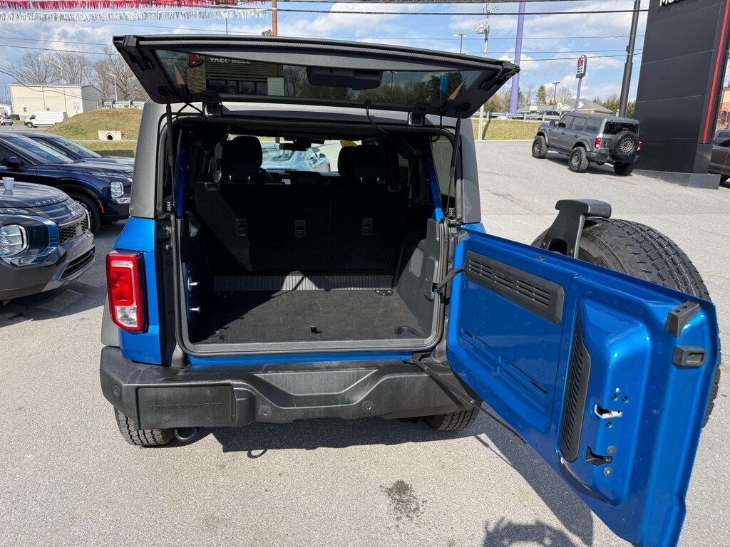 Equipment Group 222A Mid Package: 17 Carbonized Gray-Painted Aluminum Wheel; Rear Parking Sensors; Power Outlet - Back Side of Center Floor Console; Dual Smart Charging USB Ports; 2.3L EcoBoost I-4 Engine; Front Row Heated Seats; Driver and Front Passenger Illuminated Sliding Visor Vanity Mirrors; AM/FM Stereo; Dual-Zone Electronic Automatic Temperature Control; Connected Navigation; P255/75R17 A/T Tires; Ambient Footwell Lighting; Remote Start System; Cloth Bucket Seats; 2-Door Intelligent Access with Lock/unlock. Ford Co-Pilot360: Auto High-Beam Headlamps; Rear View Camera; Pre-Collision Assist with Automatic Emergency Braking; Blind Spot Information System (BLIS); Lane-Keeping System. Carbonized Gray Molded-In-color Hard Top. Velocity Blue Metallic. **Equipment listed is based on original vehicle build and subject to change. Please confirm the accuracy of the included equipment by calling the dealer prior to purchase.**