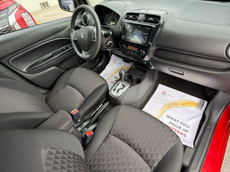 This model features a hands-free Bluetooth phone system. Apple CarPlay: Seamless smartphone integration for this vehicle - stay connected and entertained on the go! The vehicle offers Android Auto for seamless smartphone integration. This mid-size car offers Automatic Climate Control for personalized comfort. See what's behind you with the back up camera on this Mitsubishi Mirage. It gleams with a flashy red exterior. Maintaining a stable interior temperature in this unit is easy with the climate control system. Front wheel drive on it gives you better traction and better fuel economy. It has a 3 Cyl, 1.2L high output engine. Anti-lock brakes are standard on this model. Easily set your speed in this Mitsubishi Mirage with a state of the art cruise control system. Increase or decrease velocity with the touch of a button. This vehicle looks aggressive with a streamlined rear spoiler. The manual transmission in it will give you exceptional control of your driving experience.