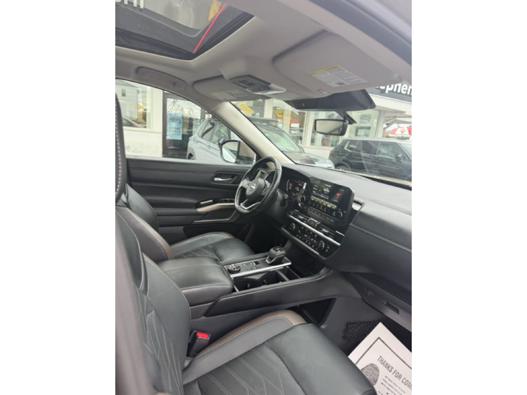 2023 Nissan Pathfinder Platinum ��" pristine condition with only 28,944 miles, located in Princeton, WV. This 4WD SUV pairs a proven 3.5L V6 gasoline engine with refined Platinum-level comfort and capability, delivering confident performance for families and adventurers alike. With low mileage and meticulous care, this Nissan Pathfinder is priced to move and represents the best price in the area for comparable models. Inside, the Platinum trim features premium leather seats, spacious three-row seating, and advanced connectivity including Apple CarPlay and Android Auto for seamless smartphone integration. Hands-free Bluetooth keeps calls and media convenient and safe, while XM Radio adds entertainment options for every drive. Thoughtful driver-assist features and upscale touches enhance comfort on long trips and daily commutes. Practicality meets capability with rugged 4WD traction for varying road conditions and a powerful V6 for towing and highway passing. Cargo versatility and smart storage solutions make this Nissan Pathfinder ideal for weekend gear or everyday errands. Routine maintenance has been performed, and the vehicle shows exceptional wear consistent with its low mileage. Located in Princeton, WV, this 2023 Nissan Pathfinder Platinum offers an unbeatable combination of features, condition, and value. With the best price on the market and low miles, it won't last long ��" schedule a test drive today to experience comfort, technology, and capability in one premium SUV.