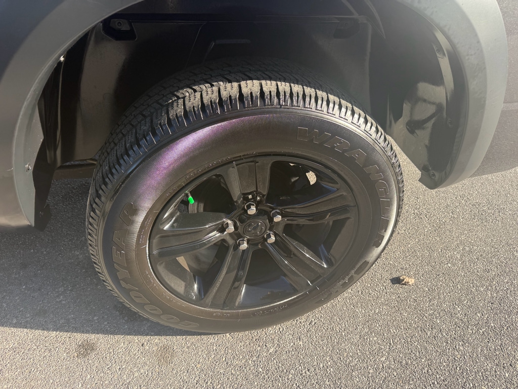 • Quick Order Package 29F Warlock: Black Powder Coated Rear Bumper; Black RAM Head Tailgate Badge; 4x4 Flat Black Badge; B-Pillar Black Out; Semi-Gloss Black Hub; Bi-Function Halogen Projector Headlamps; Raised Ride Height; P275/60R20 BSW AS Tires; Rear Extra Heavy Duty Shock Absorbers; Sport Tail Lamps; Black Exterior Truck Badging; Black Powder Coated Front Bumper; Warlock; Black Grille with RAM Lettering; Black Headlamp Filler Panel; Front Wheel Well Liners; Warlock Interior Accents; ParkSense Rear Park Assist System; Goodyear Brand Tires; Black Wheel Flares; 20 X 9 High Gloss Black Aluminum Wheels