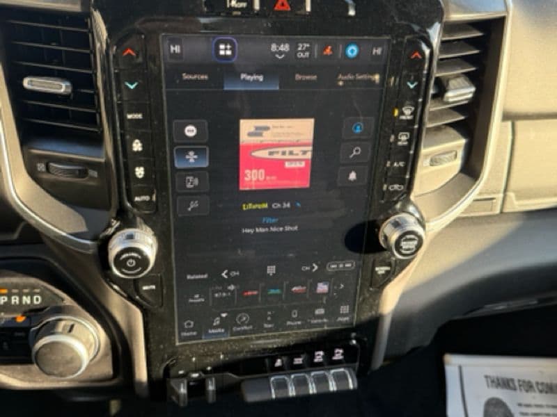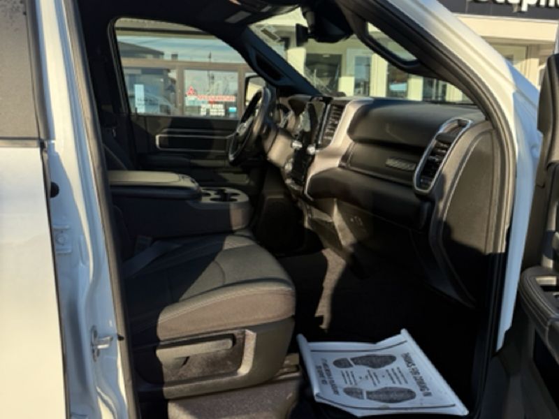 Quick Order Package 2GZ Big Horn. Safety Group: Auto High Beam Headlamp Control; Blind Spot and Cross Path Detection; Cluster 7.0 TFT Color Display; Rain Sensitive Windshield Wipers; Rear View Auto Dim Mirror; Leather Wrapped Steering Wheel; Adaptive Cruise Control with Stop; Steering Wheel Mounted Audio Controls; Adaptive Steering System; Full Speed Forward Collision Warning Plus; Lane Keep Assist. Sport Appearance Package. Bed Utility Group: MOPAR Spray in Bedliner; MOPAR Deployable Bed Step; LED Bed Lighting. Level 1 Equipment Group: Google Android Auto; SiriusXM Radio Service; Bluetooth Handsfree Phone and Audio; For Details. Visit DriveUconnect.com; For More Info. Call 800-643-2112; Leather Wrapped Steering Wheel; Rear Dome with On/off Switch Lamp; Front Fog Lamps; Integrated Voice Command with Bluetooth; Connectivity - US/Canada; Premium Cloth 40/20/40 Bench Seat; Glove Box Lamp; Auto Power-Folding Mirrors; Footwell Courtesy Lamp; 4G LTE Wi-Fi Hot Spot; GPS Antenna Input; Exterior Mirrors with Heating Element; Global Telematics Box Module; Mirror Running Lights; Foam Bottle Insert (door Trim Panel); Black Exterior Mirrors; 18 X 8.0 Polished Aluminum Wheels; Apple CarPlay; Big Horn Instrument Panel Badge; Power Adjustable Convex Aux Mirrors; Forward and Reverse Utility Lights; Locking Lower Glove Box; Selectable Tire Fill Alert; SiriusXM Satellite Radio; Power Heated Fold Telescope Mirrors; Exterior Mirrors with Supplemental Signals; Steering Wheel Mounted Audio Controls; Exterior Mirrors Courtesy Lamps; Dual Glove Boxes; Center Hub; Power Adjust Mirrors; 2nd Row in Floor Storage Bins; Power Telescoping Mirrors. Protection Group: Tow Hooks; Transfer Case Skid Plate Shield. Uconnect 5 Navigation with 12.0 Display Radio. Premium Cloth 40/20/40 Bench Seat. Blind Spot and Cross Path Detection. Chrome Flat Cab-Length Side Steps. MOPAR Spray in Bedliner. 9 Alpine Speakers with Subwoofer. Anti-Spin Differential Rear Axle. ParkSense Front/rear Park Assist System. Front Fog Lamps. Tow Hooks. **Equipment listed is based on original vehicle build and subject to change. Please confirm the accuracy of the included equipment by calling the dealer prior to purchase.**