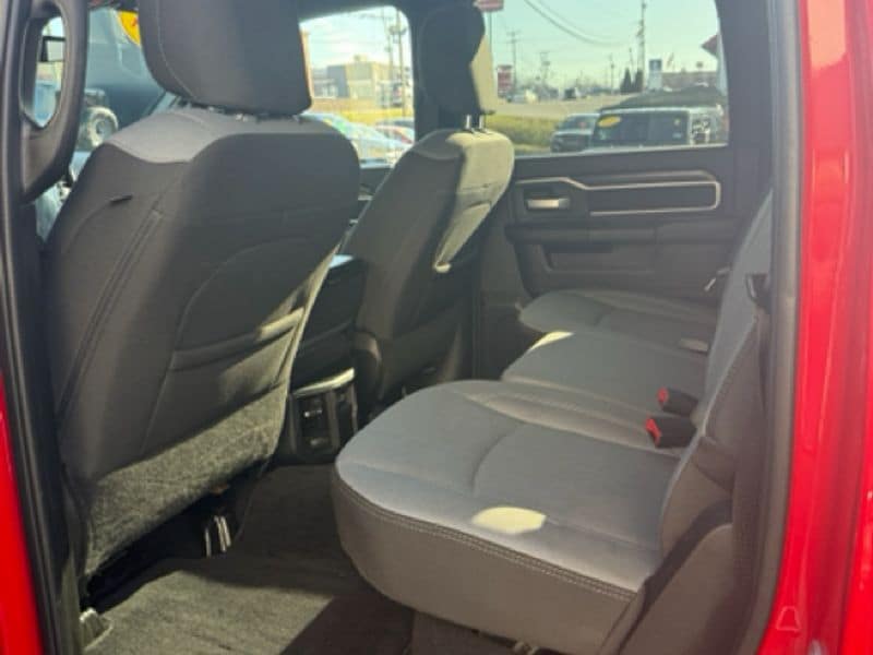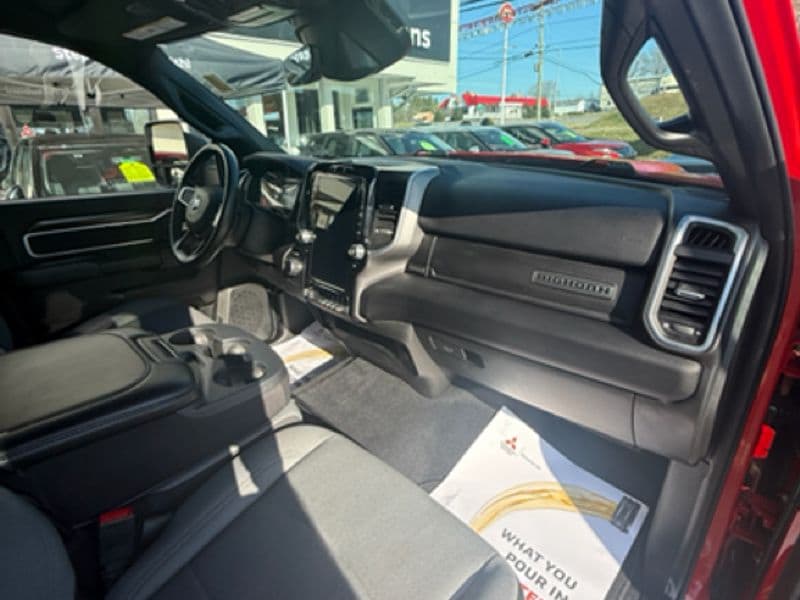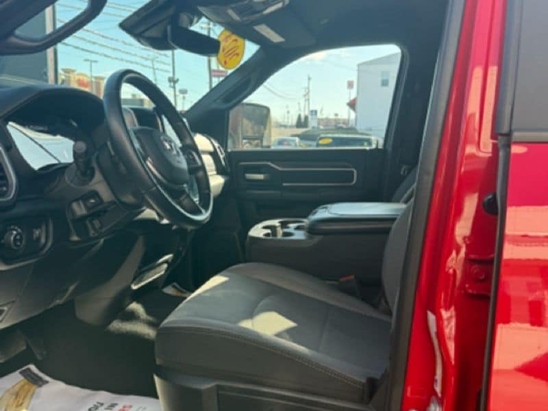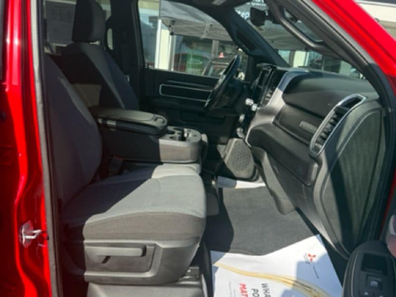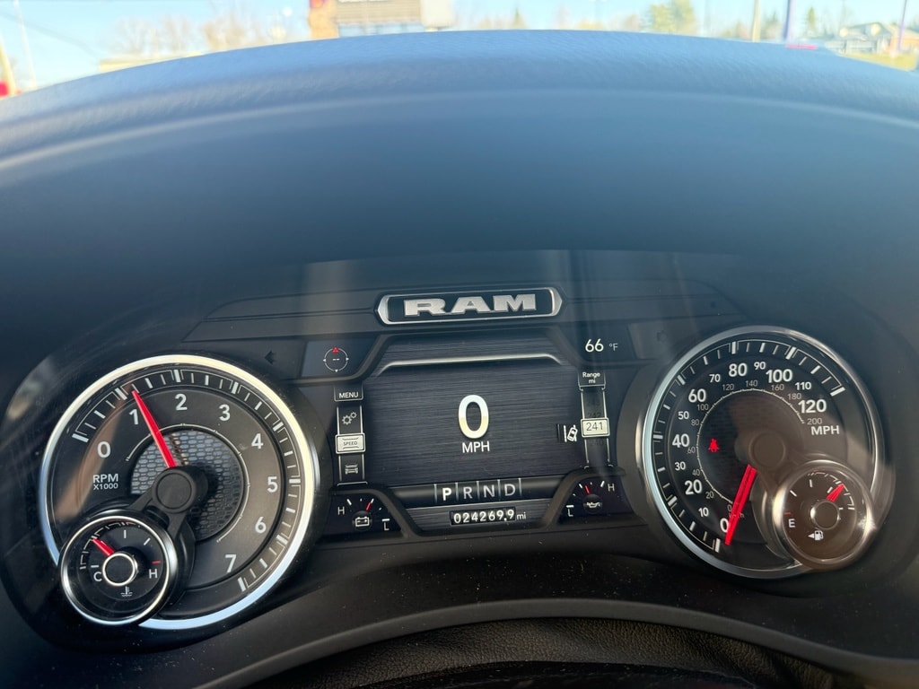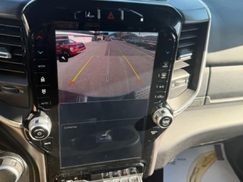 • Level 2 Equipment Group: Rear Window Defroster; Blind Spot and Cross Path Detection; Power Adjustable Pedals; Leather Wrapped Steering Wheel; Rear Power Sliding Window; Rear Dome with On/off Switch Lamp; Front Fog Lamps; Premium Cloth 40/20/40 Bench Seat; Glove Box Lamp; Auto Power-Folding Mirrors; Footwell Courtesy Lamp; Media Hub with 2 Charge Only USBs; Exterior Mirrors with Heating Element; Heated Front Seats; Mirror Running Lights; Heated Steering Wheel; Foam Bottle Insert (door Trim Panel); Black Exterior Mirrors; 18 X 8.0 Polished Aluminum Wheels; Dampened Tailgate; Security Alarm; Big Horn Instrument Panel Badge; Power Adjustable Convex Aux Mirrors; Forward and Reverse Utility Lights; Locking Lower Glove Box; Remote Start System; Uconnect 5 Navigation with 12.0 Display Radio; Power Heated Fold Telescope Mirrors; Exterior Mirrors with Supplemental Signals; Steering Wheel Mounted Audio Controls; Exterior Mirrors Courtesy Lamps; Dual Glove Boxes; 115-Volt Auxiliary Front Power Outlet; Cluster 7.0 TFT Color Display; Universal Garage Door Opener; Center Hub; Power Adjust Mirrors; 2nd Row in Floor Storage Bins; Power Telescoping Mirrors; Sun Visors with Illuminated Vanity Mirrors; ParkSense Front/rear Park Assist System