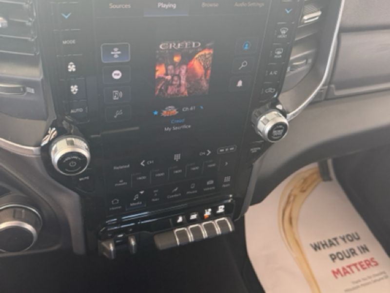 Quick Order Package 2GZ Big Horn. Safety Group: Auto High Beam Headlamp Control; Rain Sensitive Windshield Wipers; Rear View Auto Dim Mirror; Adaptive Cruise Control with Stop; Adaptive Steering System; Full Speed Forward Collision Warning Plus; Lane Keep Assist. Bed Utility Group: MOPAR Spray in Bedliner; MOPAR Deployable Bed Step; LED Bed Lighting. Level 2 Equipment Group: Rear Window Defroster; Blind Spot and Cross Path Detection; Power Adjustable Pedals; Leather Wrapped Steering Wheel; Rear Power Sliding Window; Rear Dome with On/off Switch Lamp; Front Fog Lamps; Premium Cloth 40/20/40 Bench Seat; Glove Box Lamp; Auto Power-Folding Mirrors; Footwell Courtesy Lamp; Media Hub with 2 Charge Only USBs; Exterior Mirrors with Heating Element; Heated Front Seats; Mirror Running Lights; Heated Steering Wheel; Foam Bottle Insert (door Trim Panel); Black Exterior Mirrors; 18 X 8.0 Polished Aluminum Wheels; Dampened Tailgate; Security Alarm; Big Horn Instrument Panel Badge; Power Adjustable Convex Aux Mirrors; Forward and Reverse Utility Lights; Locking Lower Glove Box; Remote Start System; Uconnect 5 Navigation with 12.0 Display Radio; Power Heated Fold Telescope Mirrors; Exterior Mirrors with Supplemental Signals; Steering Wheel Mounted Audio Controls; Exterior Mirrors Courtesy Lamps; Dual Glove Boxes; 115-Volt Auxiliary Front Power Outlet; Cluster 7.0 TFT Color Display; Universal Garage Door Opener; Center Hub; Power Adjust Mirrors; 2nd Row in Floor Storage Bins; Power Telescoping Mirrors; Sun Visors with Illuminated Vanity Mirrors; ParkSense Front/rear Park Assist System. Protection Group: Tow Hooks; Transfer Case Skid Plate Shield. Uconnect 5 Navigation with 12.0 Display Radio. Premium Cloth 40/20/40 Bench Seat. Blind Spot and Cross Path Detection. Chrome Flat Cab-Length Side Steps. MOPAR Spray in Bedliner. 9 Alpine Speakers with Subwoofer. ParkSense Front/rear Park Assist System. Remote Start System. 115-Volt Auxiliary Front Power Outlet. Front Fog Lamps. Rear Window Defroster. Security Alarm. Tow Hooks. **Equipment listed is based on original vehicle build and subject to change. Please confirm the accuracy of the included equipment by calling the dealer prior to purchase.**