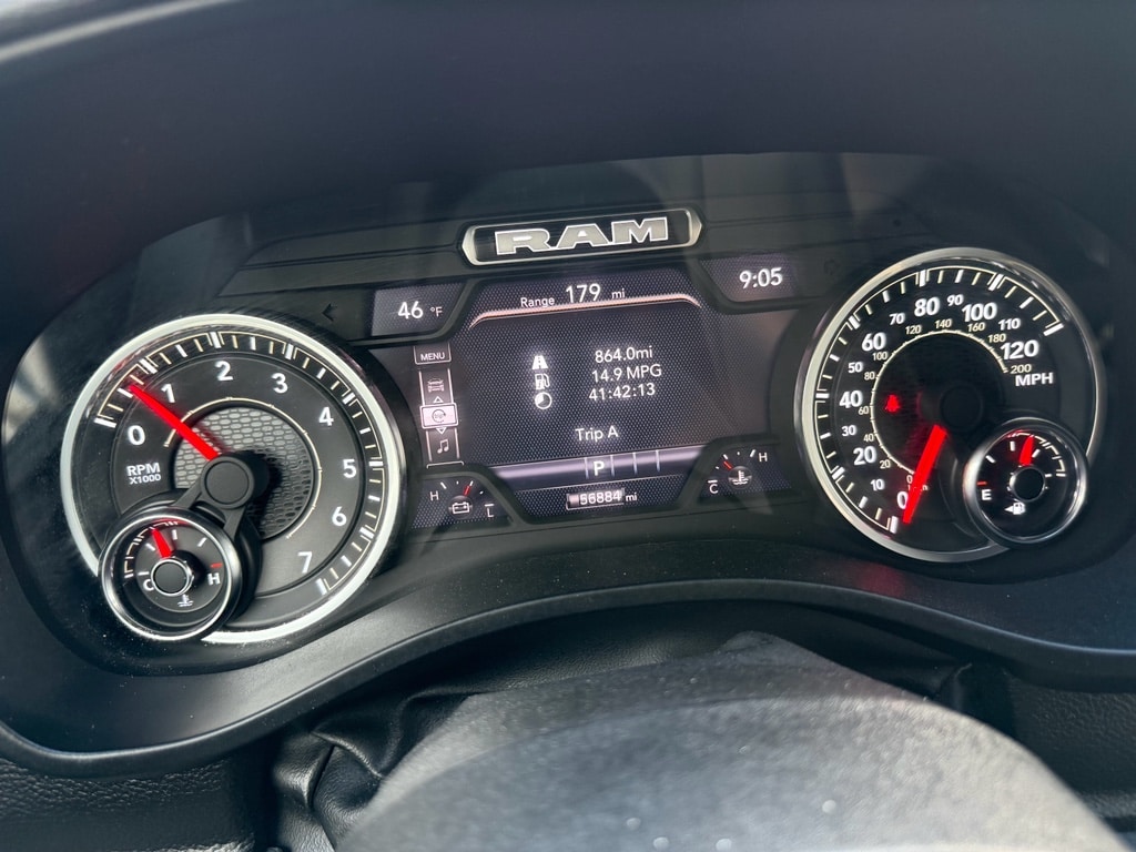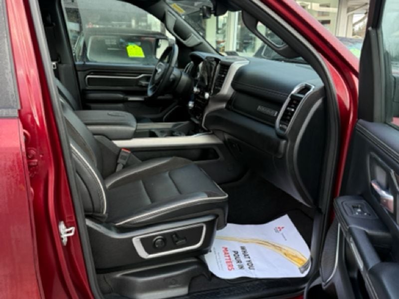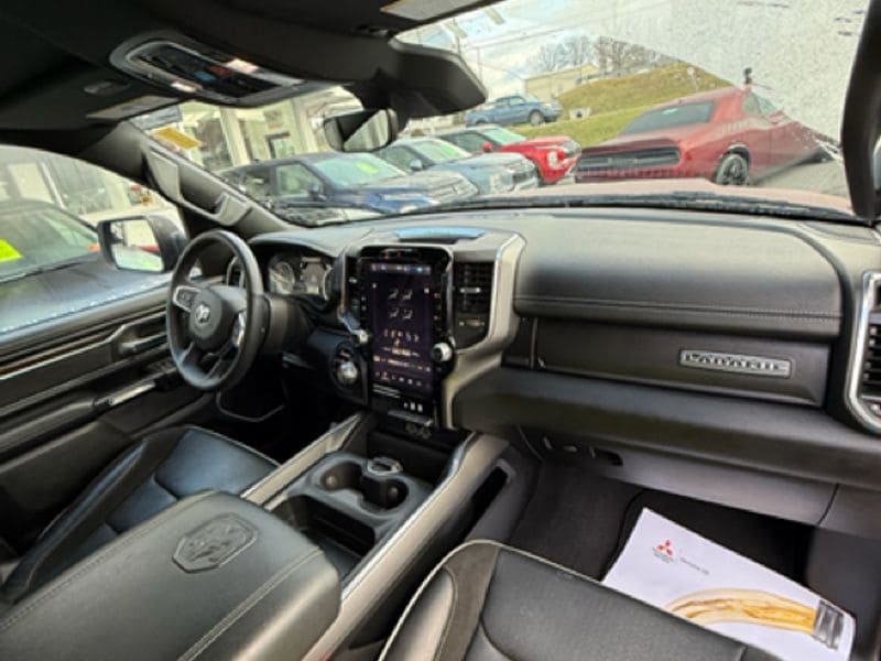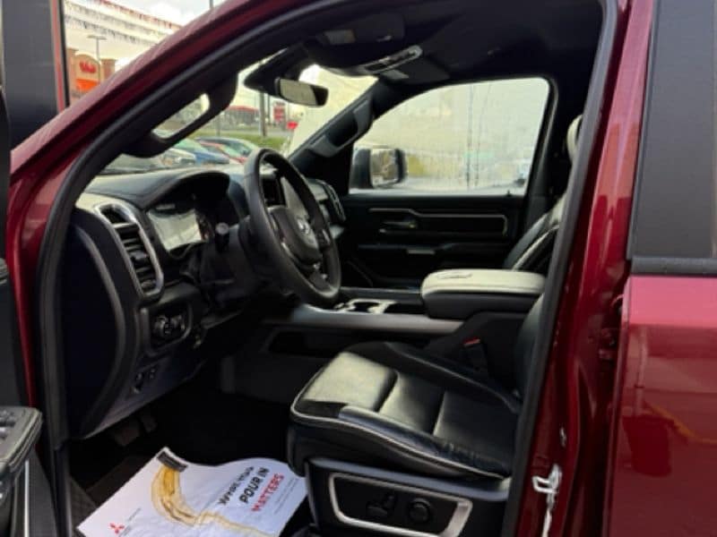 This unit keeps you comfortable with Auto Climate. This 1/2 ton pickup's Lane Departure Warning keeps you safe by alerting you when you drift from your lane. The vehicle offers Apple CarPlay for seamless connectivity. You'll never again be lost in a crowded city or a country region with the navigation system on this unit. The leather seats in it are a must for buyers looking for comfort, durability, and style. The state of the art park assist system will guide you easily into any spot. This Ram 1500's Forward Collision Warning feature alerts drivers to potential front-end collisions. This model has automated speed control that adjusts to maintain a safe following distance, enhancing highway driving convenience. Never get into a cold vehicle again with the remote start feature on the Ram 1500. Bluetooth technology is built into this model, keeping your hands on the steering wheel and your focus on the road.